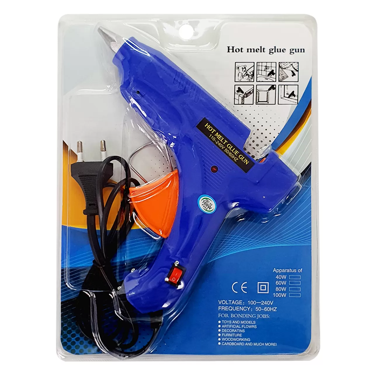 Термопистолет с кнопкой выключения эффективно склеивает мелкие предметы. Это незаменимый инструмент для всех, кто делает мелкий ремонт дома или занимается декоративно-прикладным искусством.